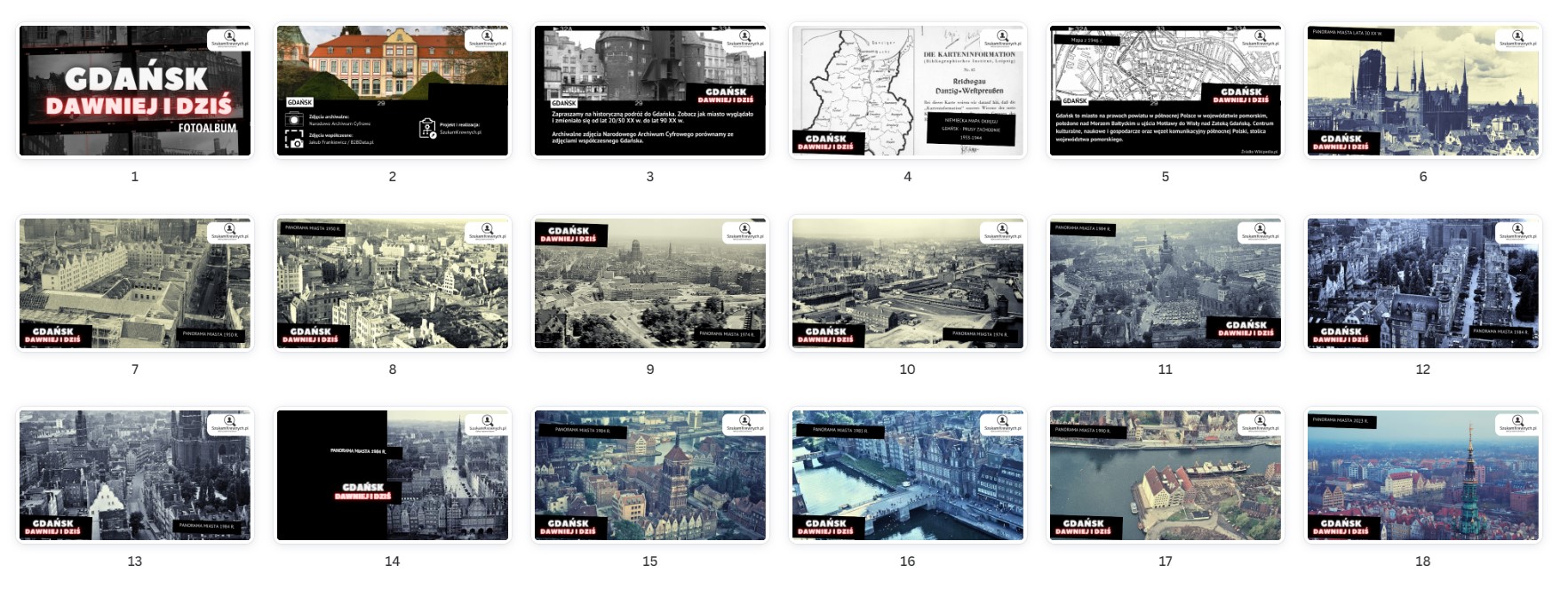 „Gdańsk – Dawniej i dziś” to fascynujące połączenie archiwalnych fotografii z okresu lat 20-90 XX w. pochodzących z Narodowego Archiwum Cyfrowego oraz autorskich, współczesnych zdjęć, ukazujących przemiany tego malowniczego miejsca w Polsce.