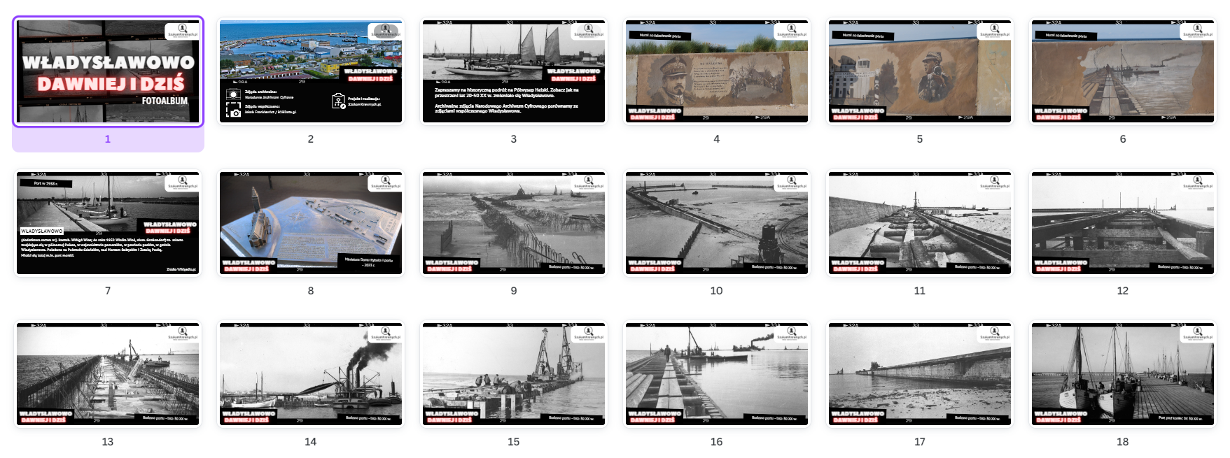 „Władysławowo – Dawniej i dziś” to fascynujące połączenie archiwalnych fotografii z okresu lat 20-50 XX r. pochodzących z Narodowego Archiwum Cyfrowego, a także autorskich, współczesnych zdjęć, ukazujących przemiany tego malowniczego miejsca w Polsce.